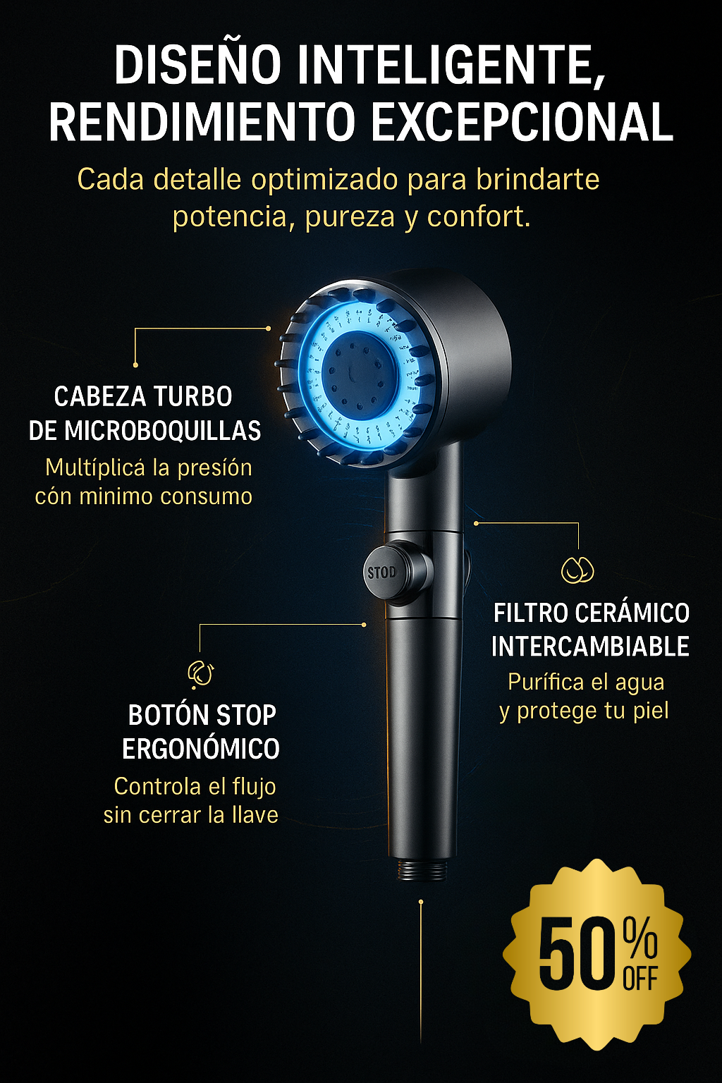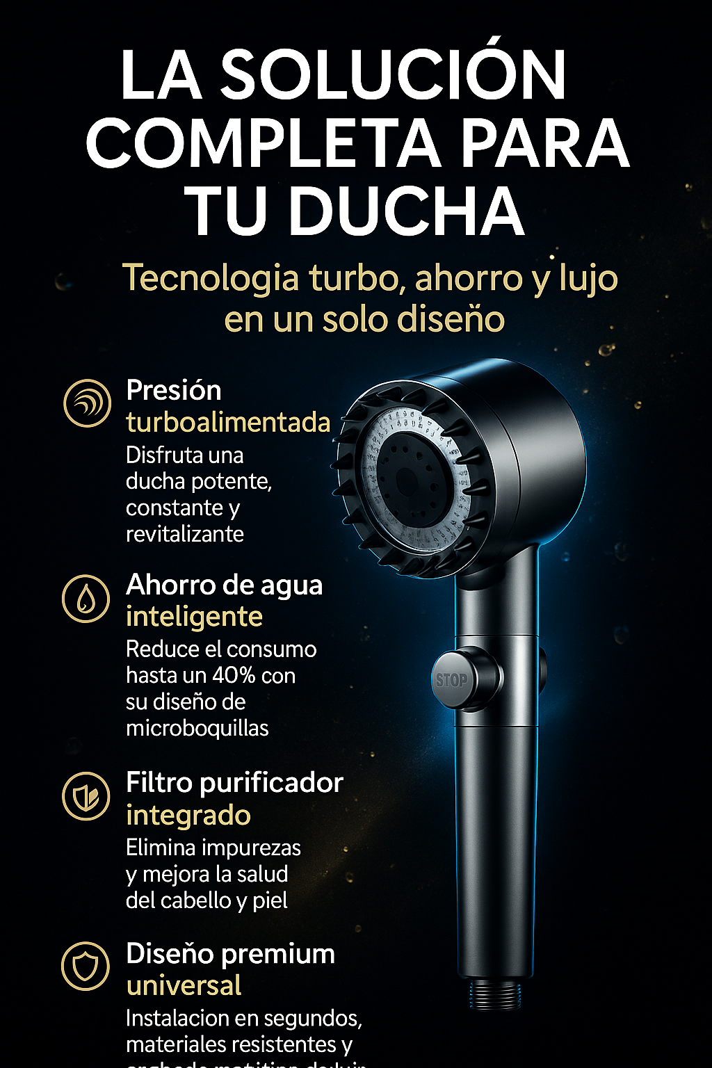 - 💧 Presión Turbo para una Ducha Potente y Revitalizante