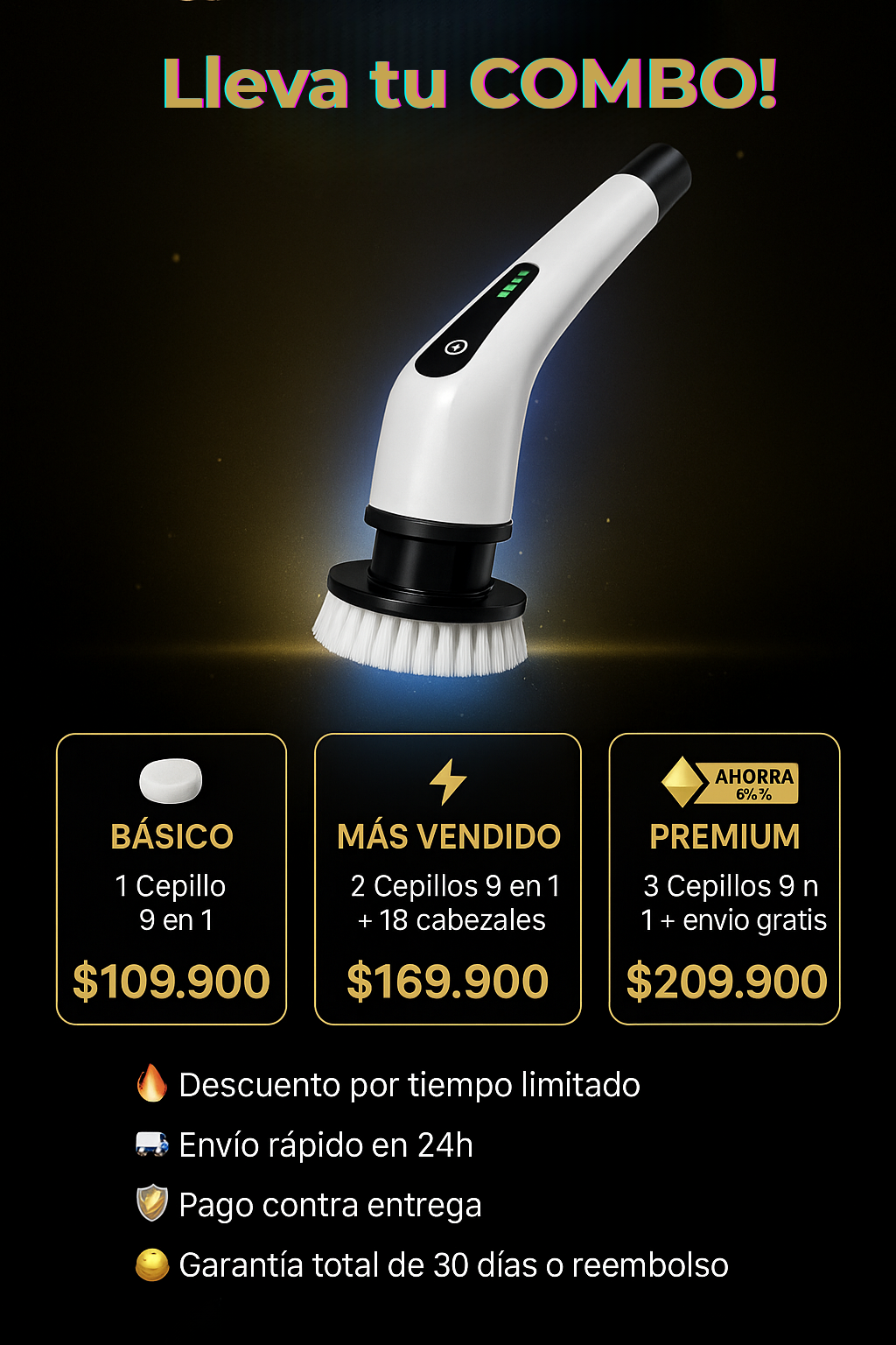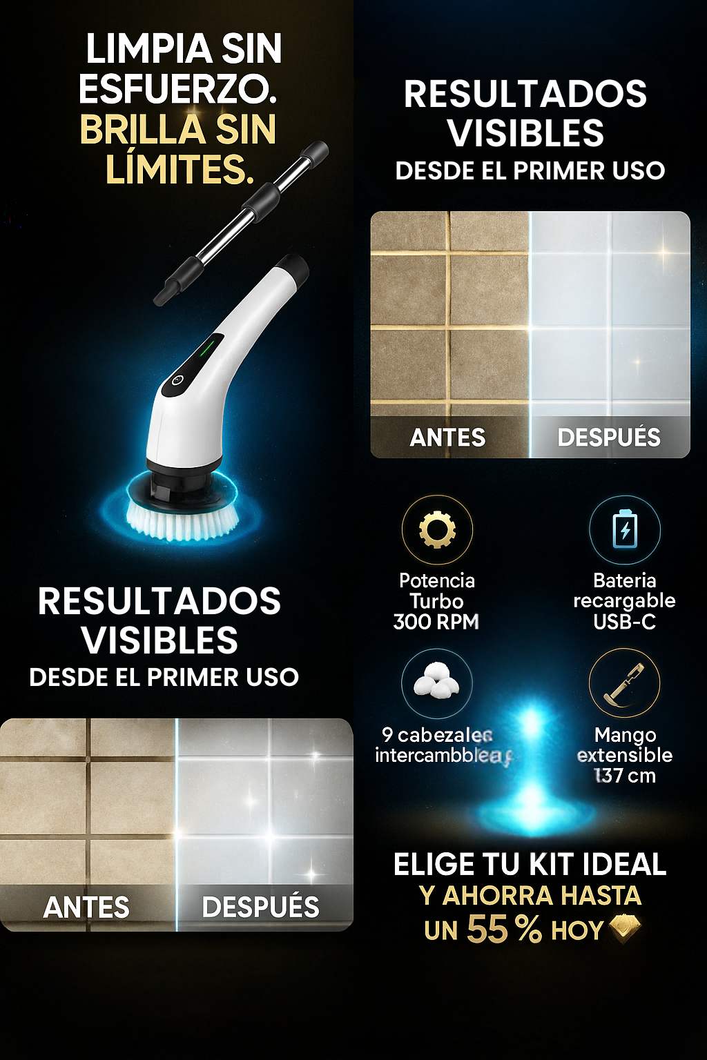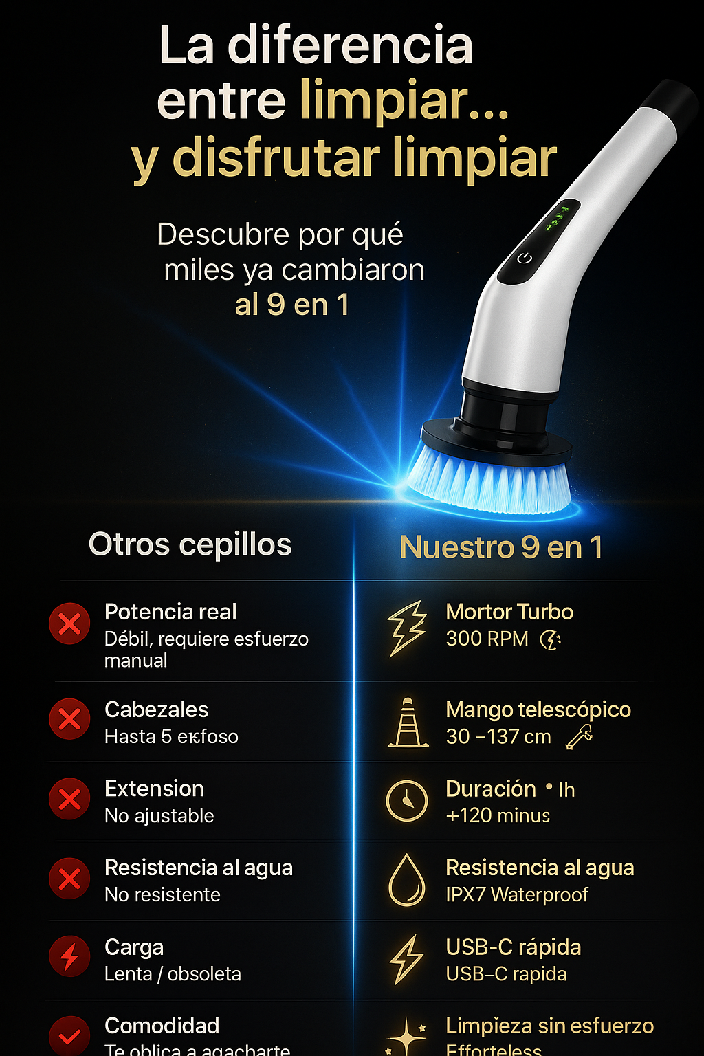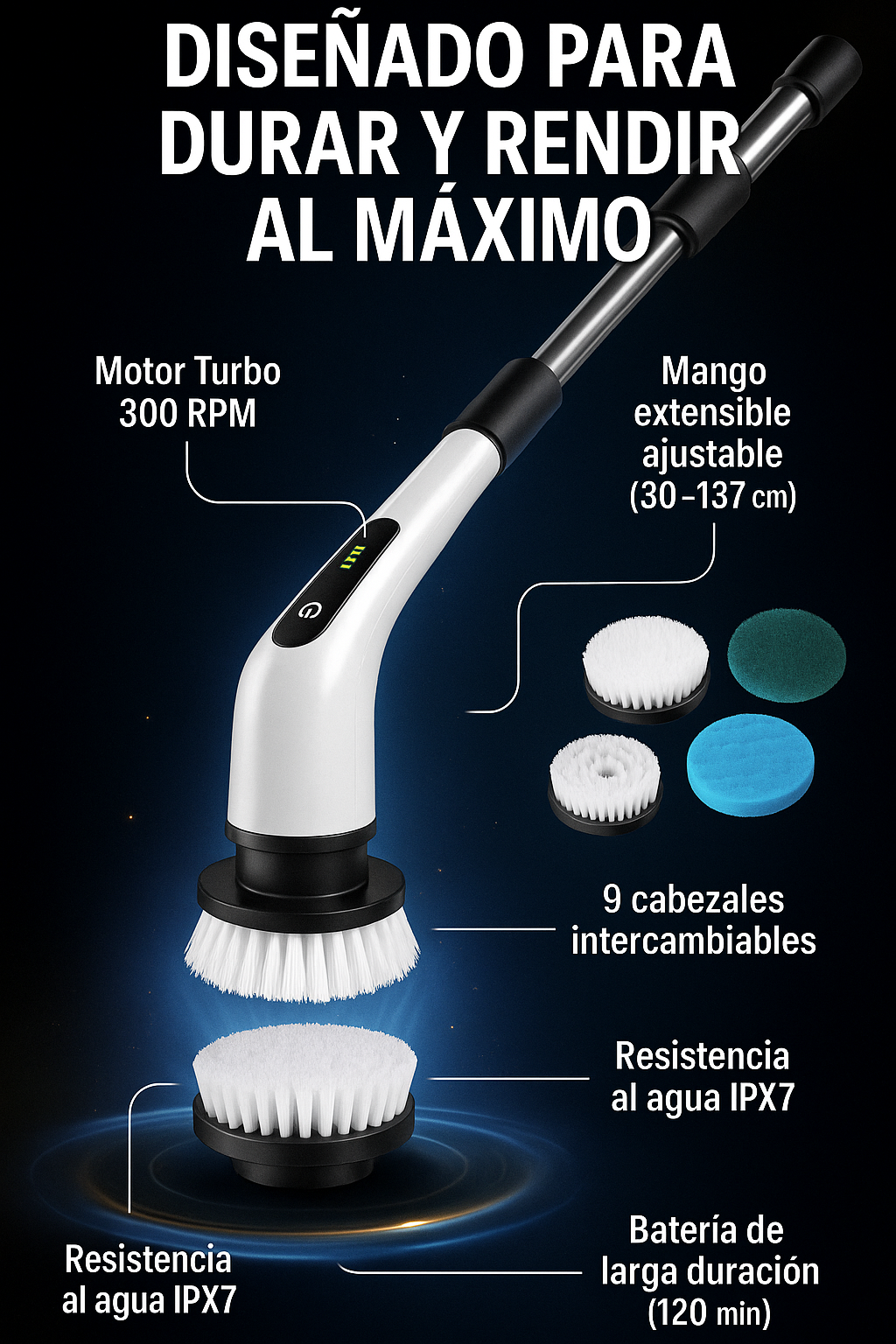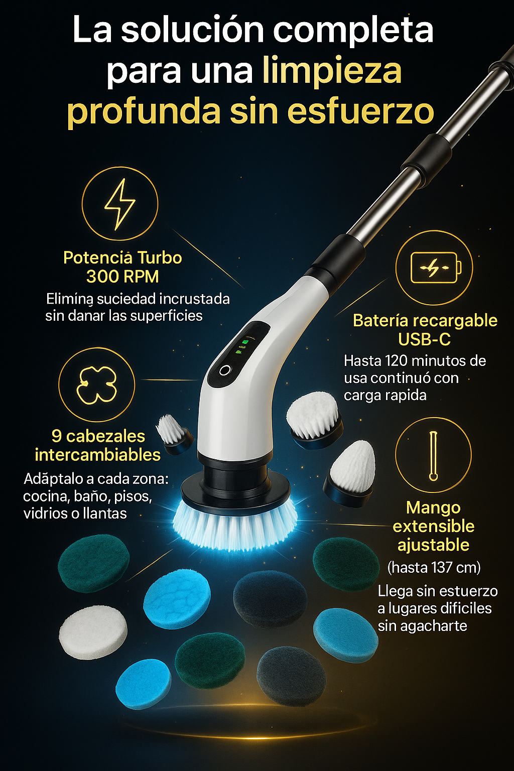 Cepillo Eléctrico Multifuncional 9 en 1 - Extensión Ajustable.