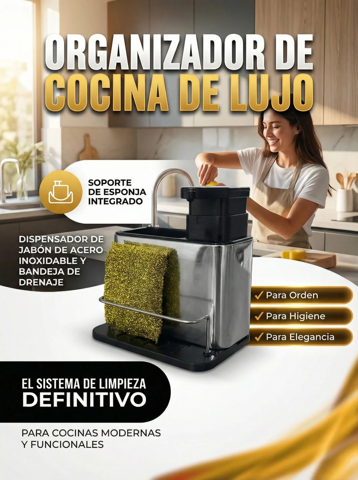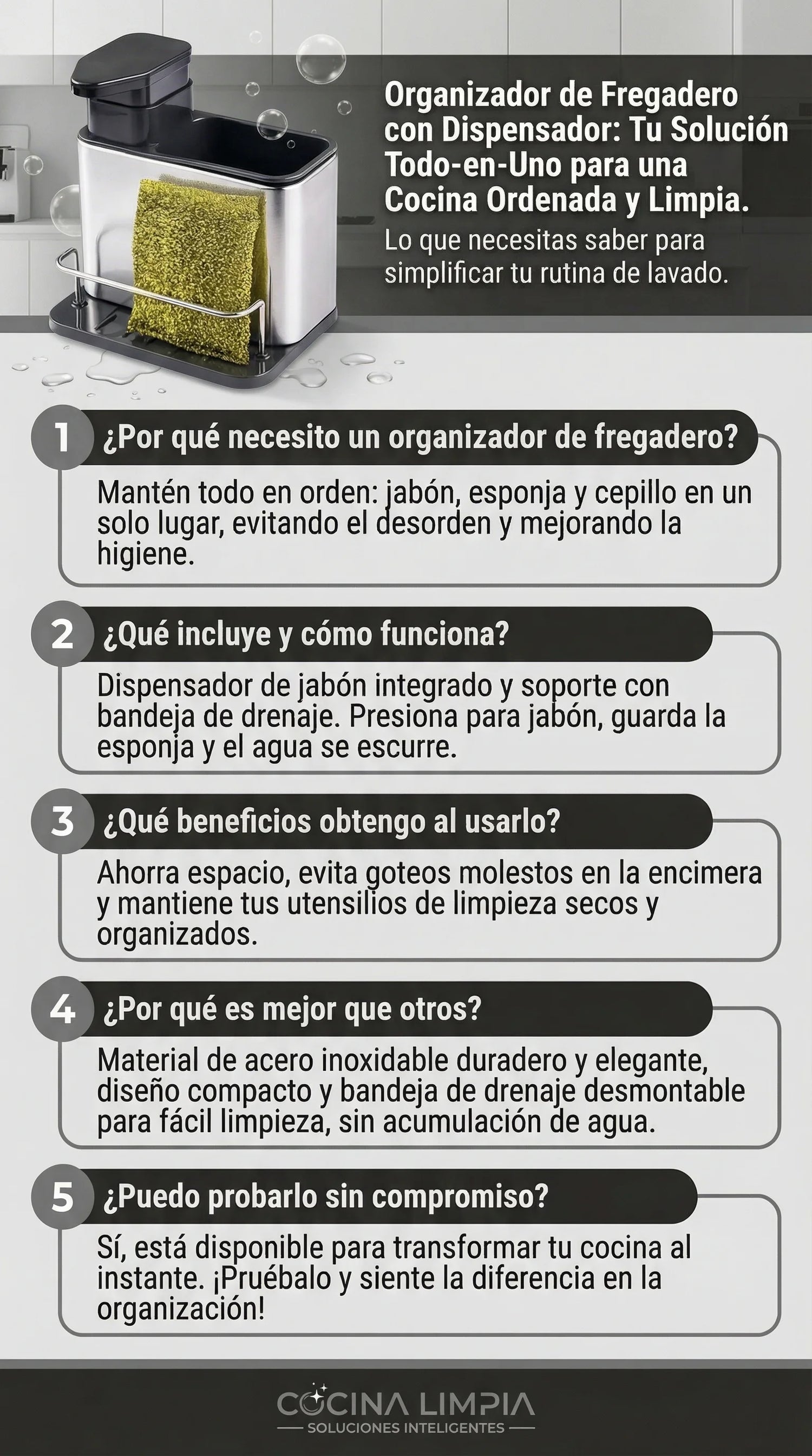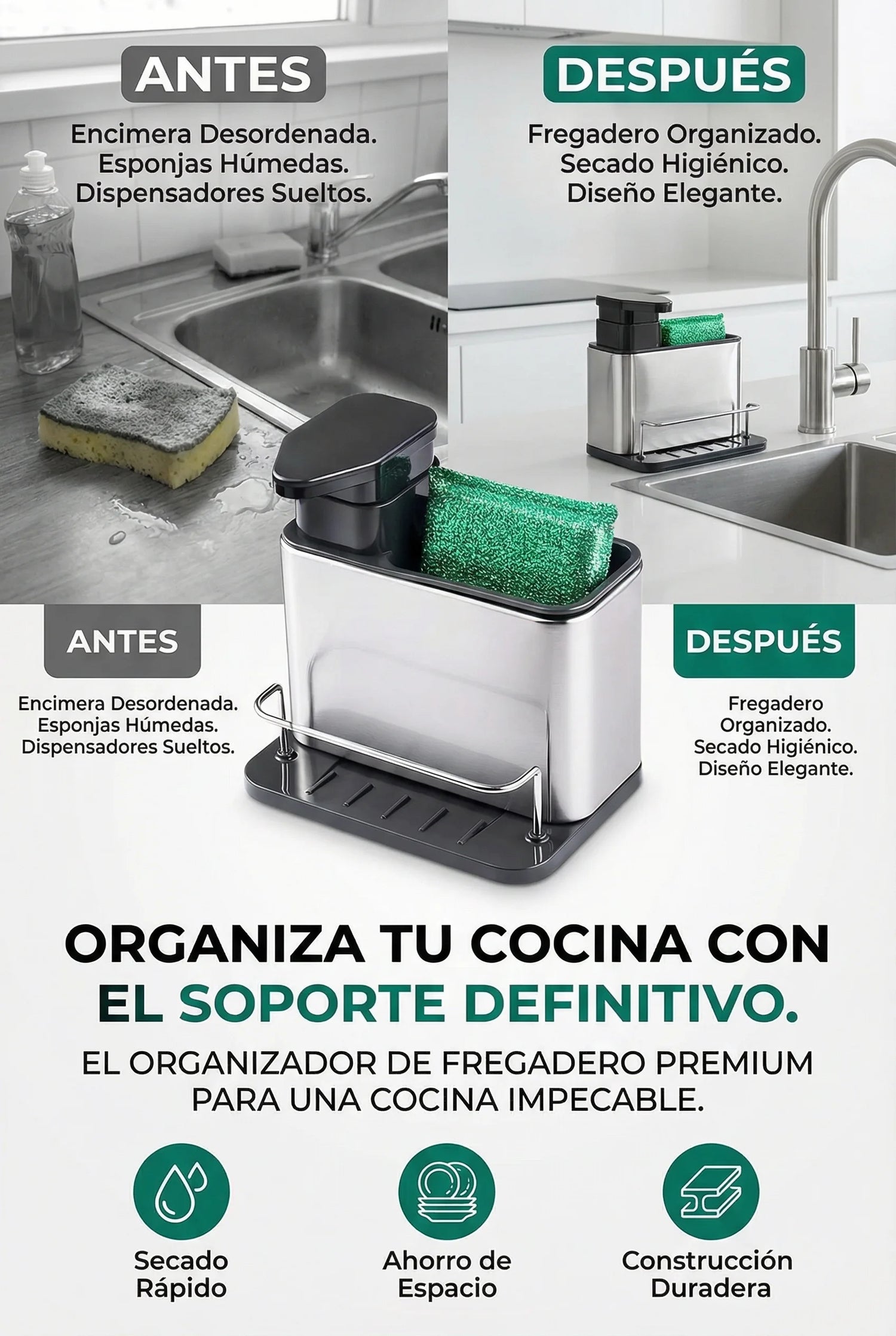 Dispensador de Jabón Líquido con Porta Esponja