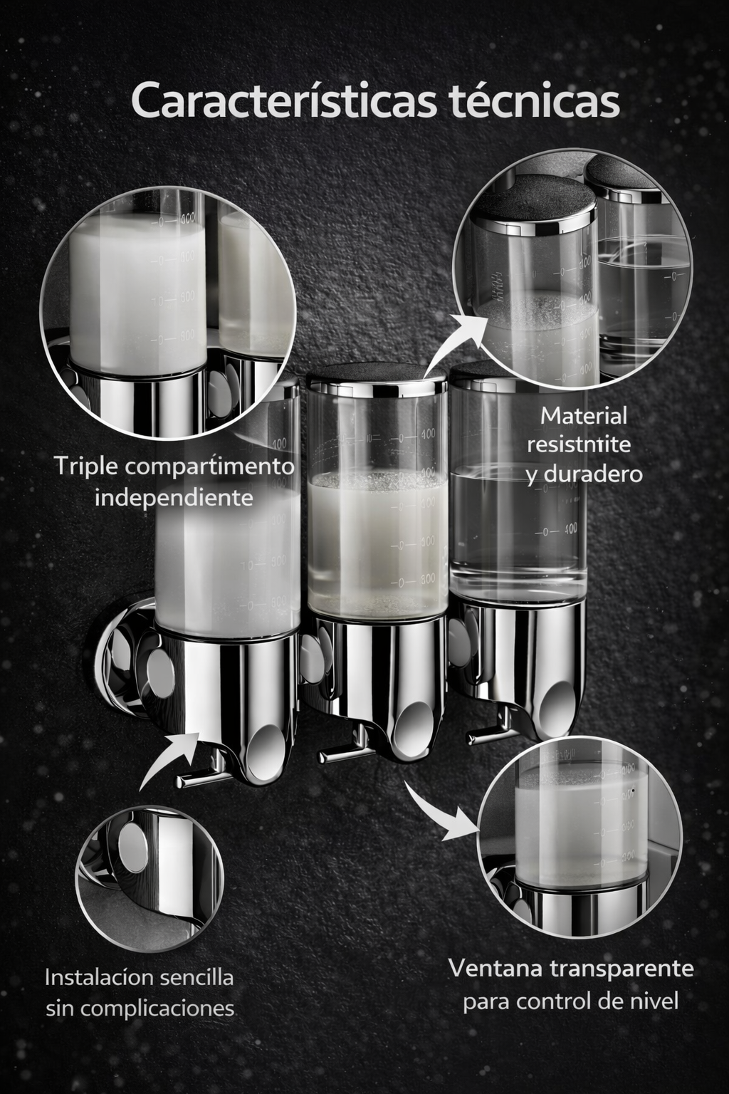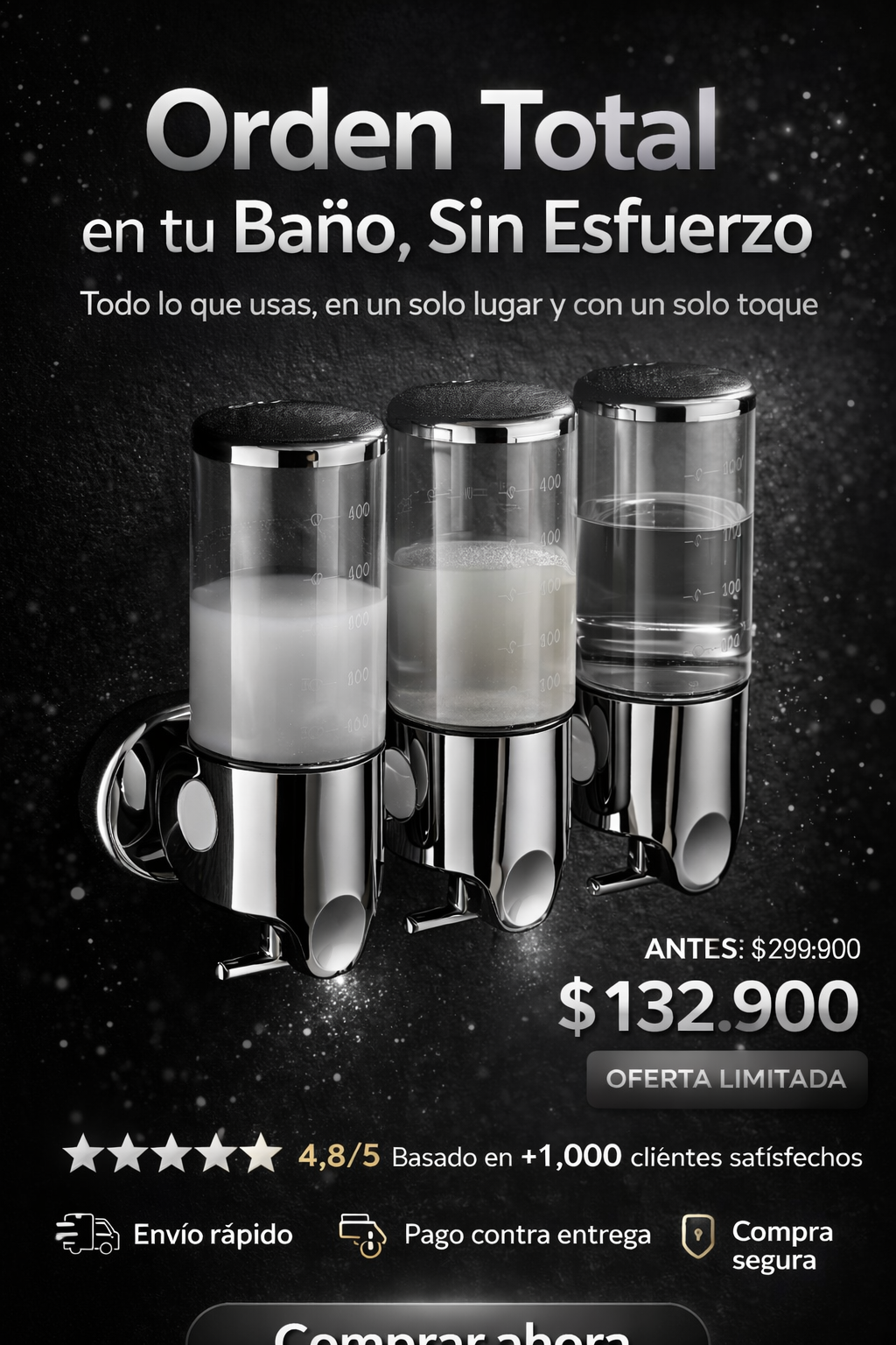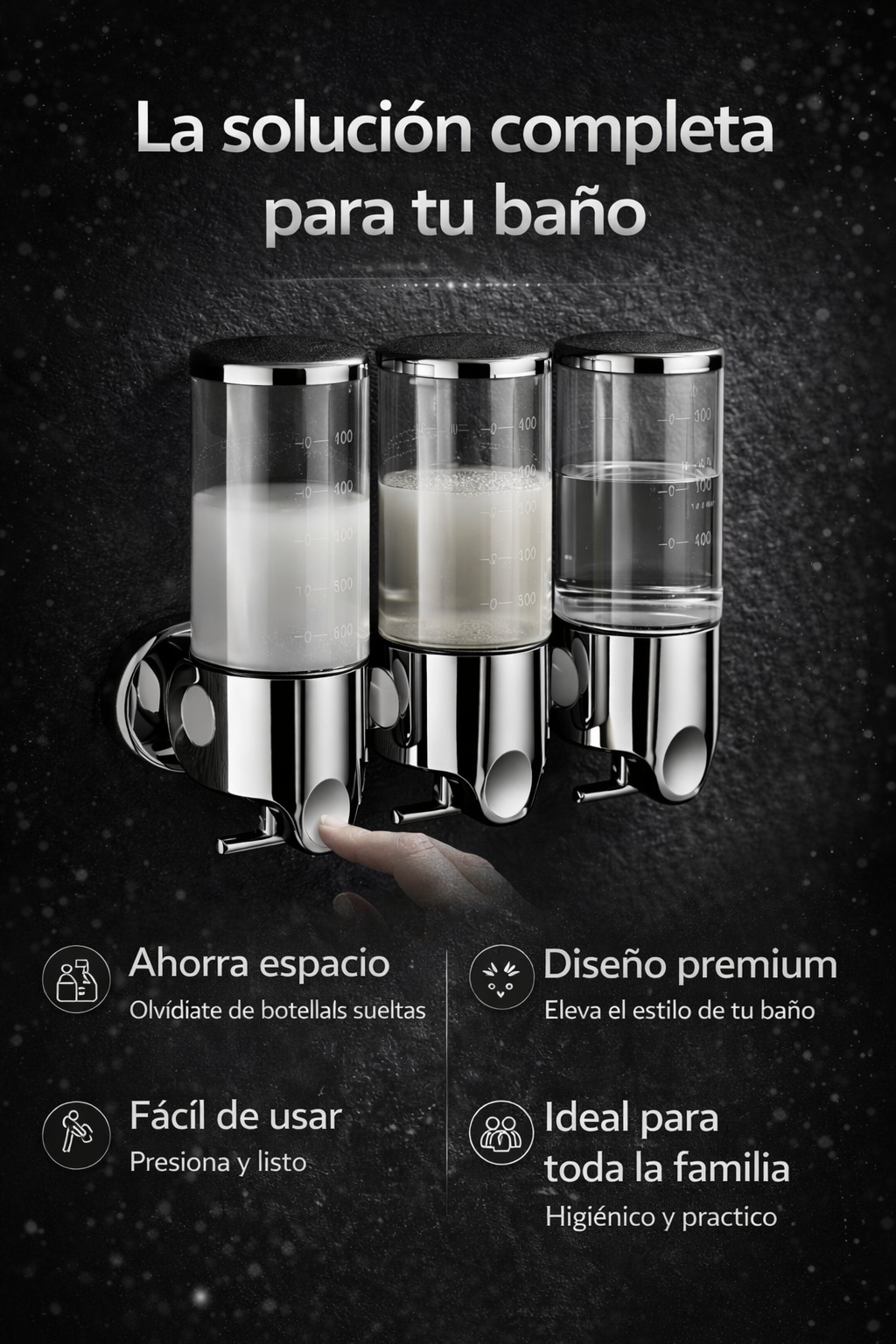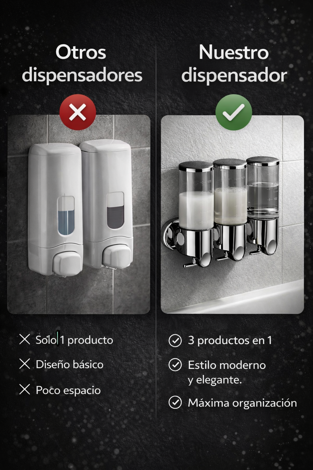 Dispensador Triple de Jabón de Baño – Diseño Metálico Premium