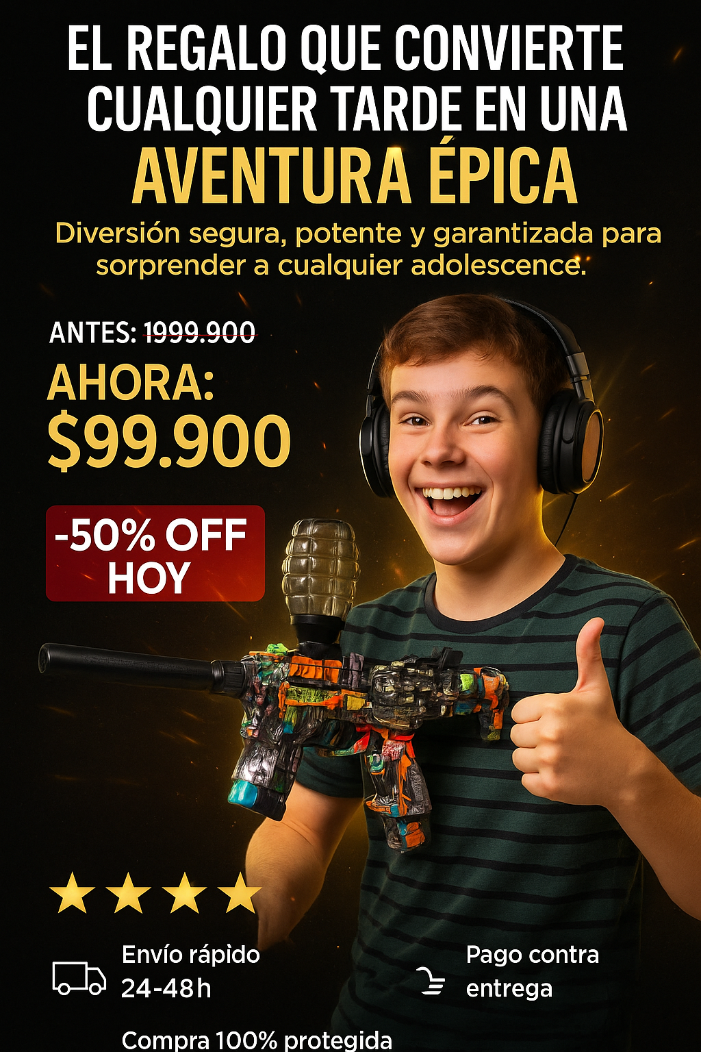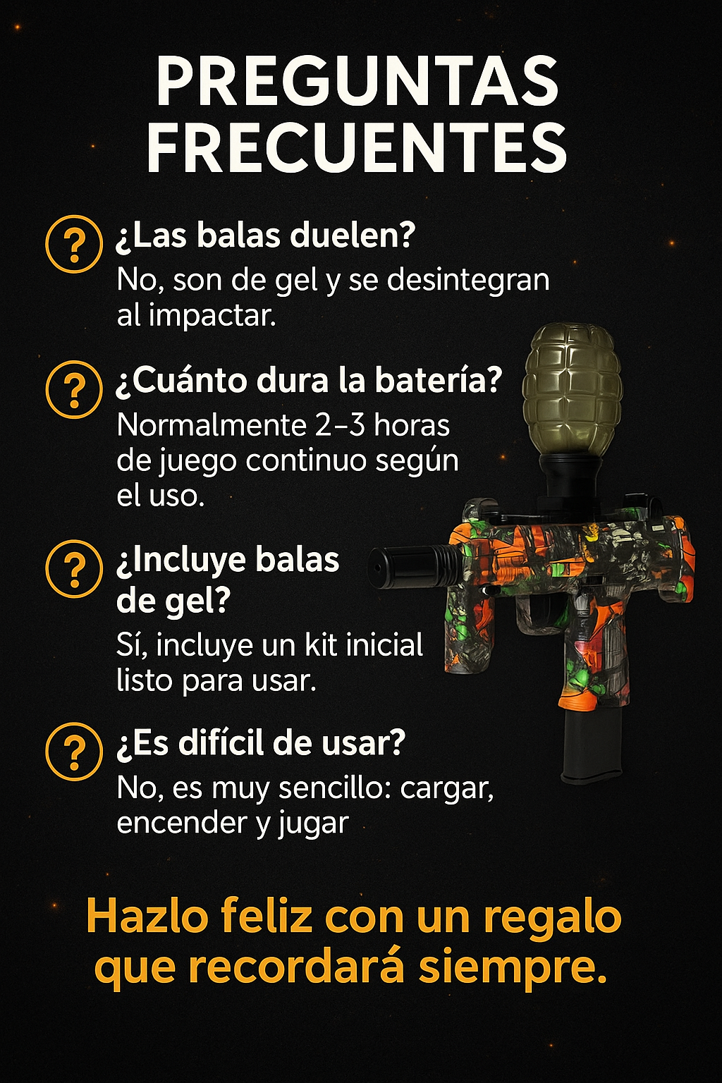 Laura Chacón – Cartagena El envío súper rápido. El producto llegó bien empacado. Dispara bien, sin atascos. Recomendado para mayores de 14 como dice la caja.