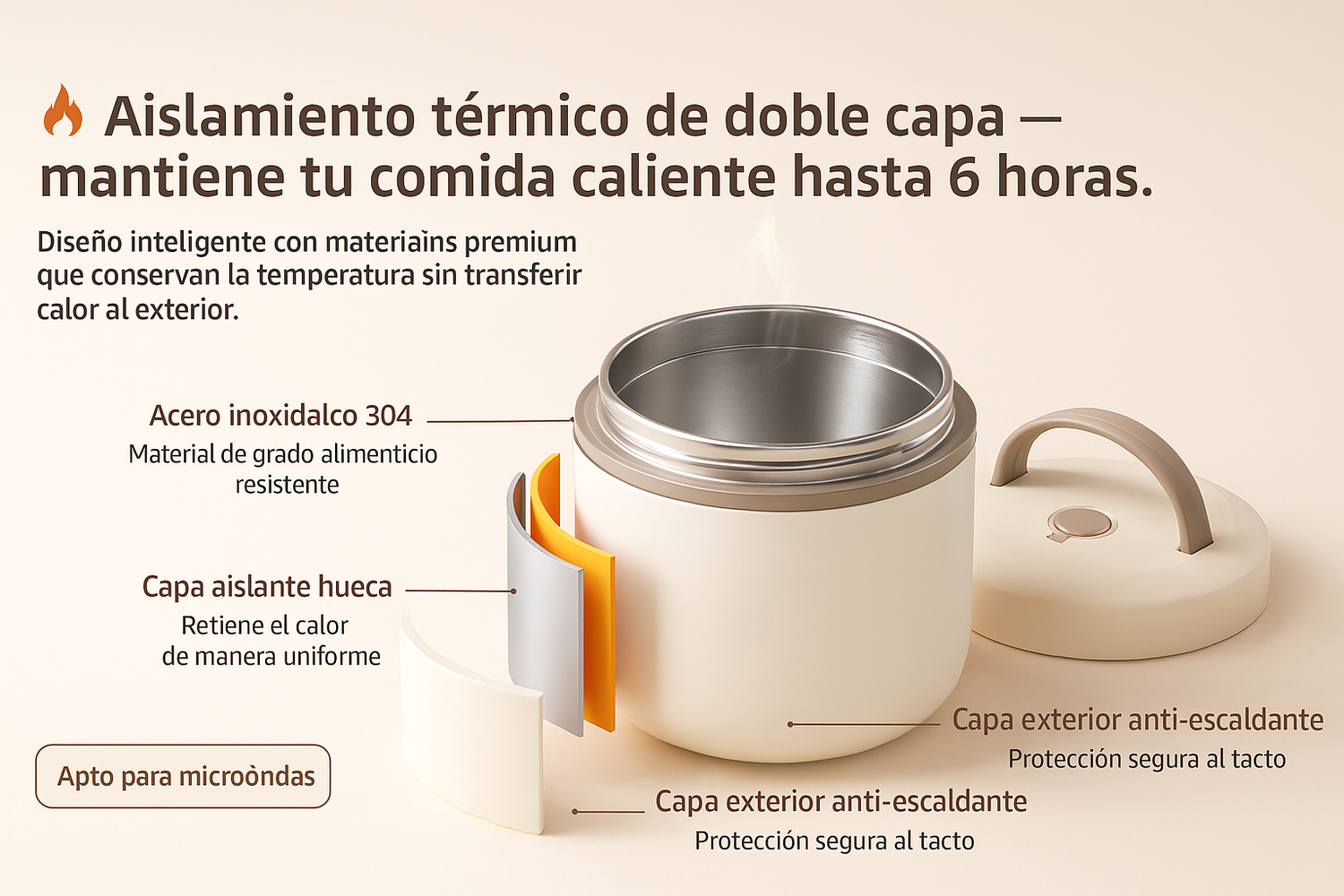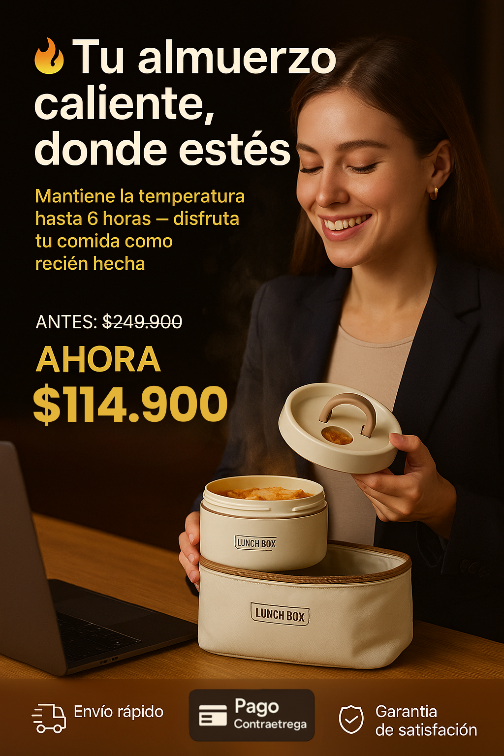 María Fernanda López – Medellín, Antioquia “Me encantó este porta comidas 😍. Mantiene la comida calientica hasta la hora del almuerzo y el estuche es súper práctico. Lo uso todos los días en la oficina.”